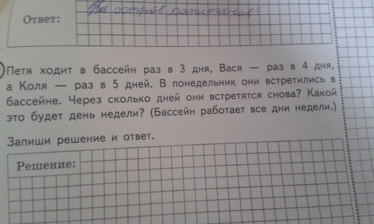 прибавим к понедельнику 4 дня,получается они встретятся ещё раз в пятницу.