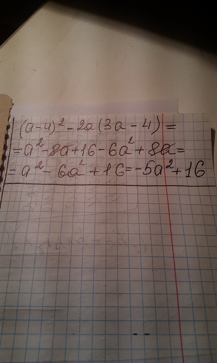 Упростите выражение: (a-4)^2-2a(3a-4)