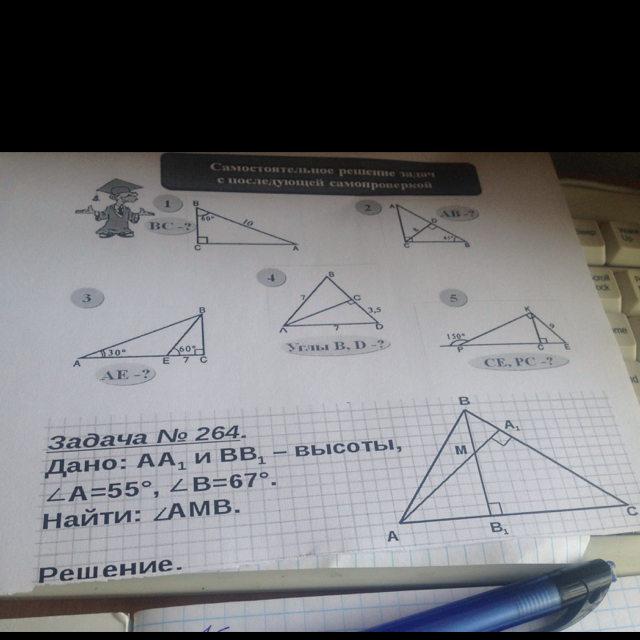 Сумма 3 углов = 180° => 1. 180 - (55+67) = хх