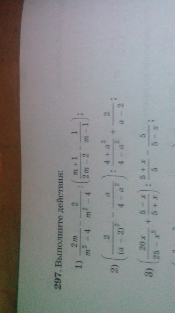 1) frac{2m}{m^2-4} - frac{2}{m^2-4} :( frac{m+1}{2m-2} - frac{2}{m-1} )= \  \ =frac{2m}{(m-2)(m+2)} - frac{2}{(m-2)(m+2)} :( frac{m+1}{2(m-1)} - frac{2}{m-1} )= \  \ =frac{2m}{(m-2)(m+2)} - frac{2}{(m-2)(m+2)} :( frac{m+1}{2(m-1)} - frac{4}{2(m-1)} )= \  \=frac{2m}{(m-2)(m+2)} - frac{2}{(m-2)(m+2)} : frac{m+1-4}{2(m-1)}=  \  \ =frac{2m}{(m-2)(m+2)} - frac{2}{(m-2)(m+2)} cdot  frac{2(m-1)}{m-3}=  \  \= frac{2m(m-3)-4(m-1)}{(m-2)(m+2)(m-3)}=