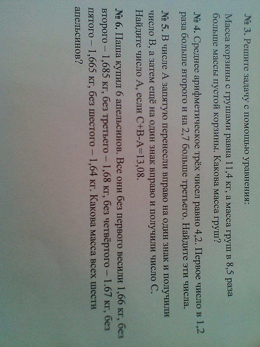 (x+y+z)/3=4,2 и x=1,2y и x=z+2,7 решая ее получаем