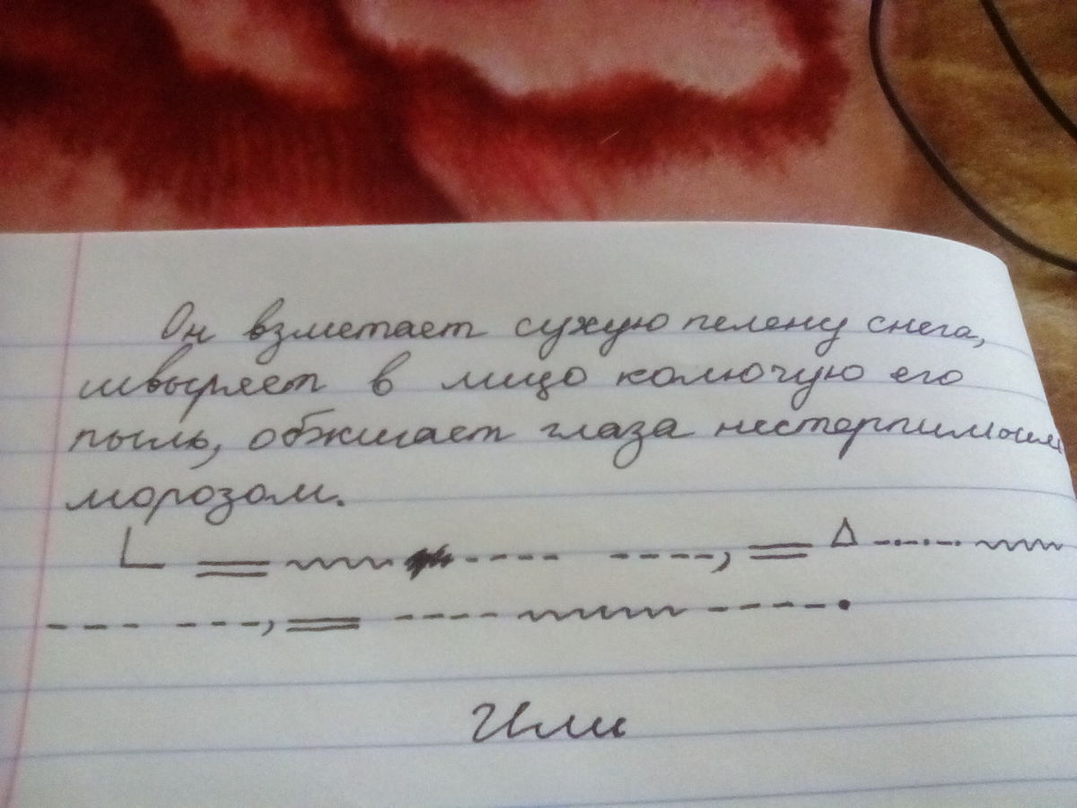 Он взметает сухую пелену снега, швыряет в лицо колючую его пыль, обжигает глаза нестерпимым морозом. Составить схему. Помогите!!!