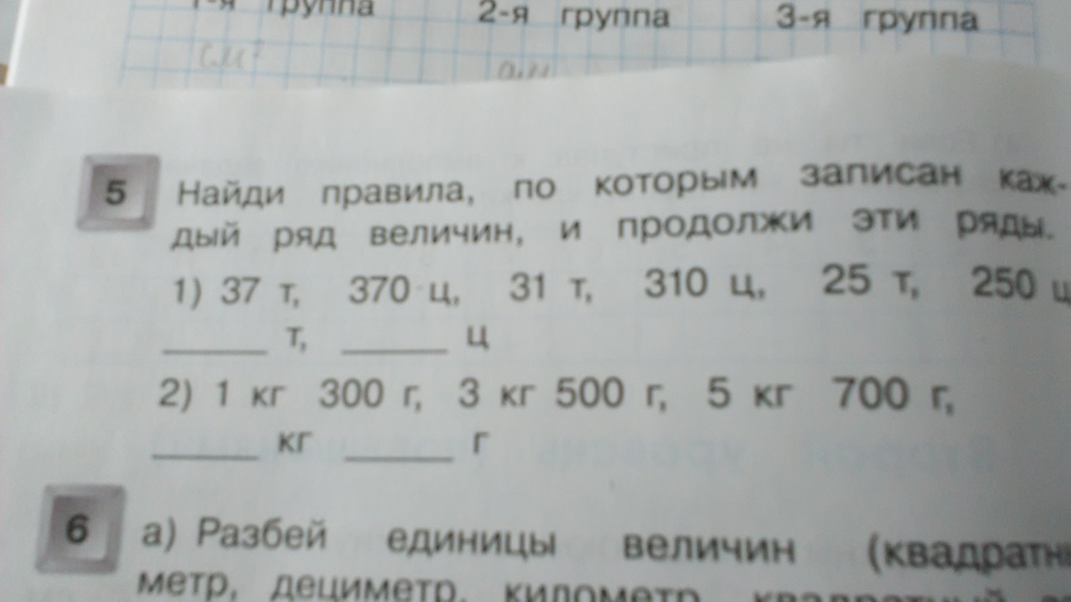 найди правила ,по которым записан каждый ряд велечин,и продолжил эти ряды