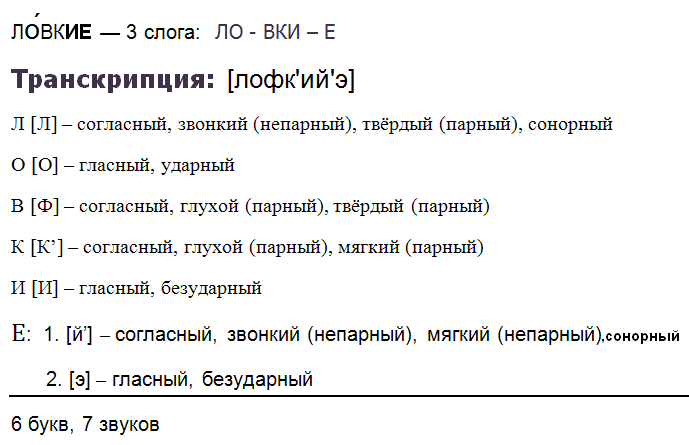 Фонетический разбор слова «ЛОВКИЕ»