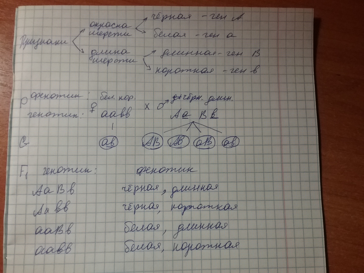 У кошек черная шерсть доминирует над белой, а длинная над короткой. Скрестили белую, короткошерстную кошку с дигетерозиготным черным, длинношерстным самцом. Какая часть потомков будет иметь белую гладкую шерсть.