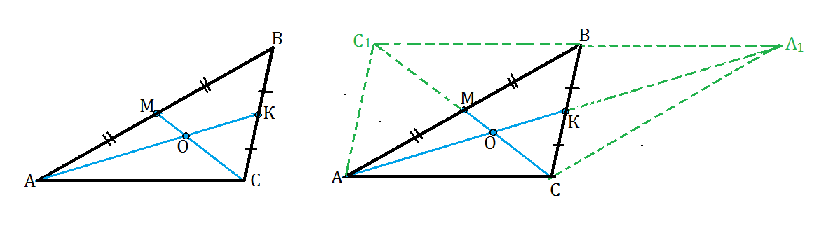 Пусть дан ∆ АВС, медианы АК и СМ, точка их пересечения - О.