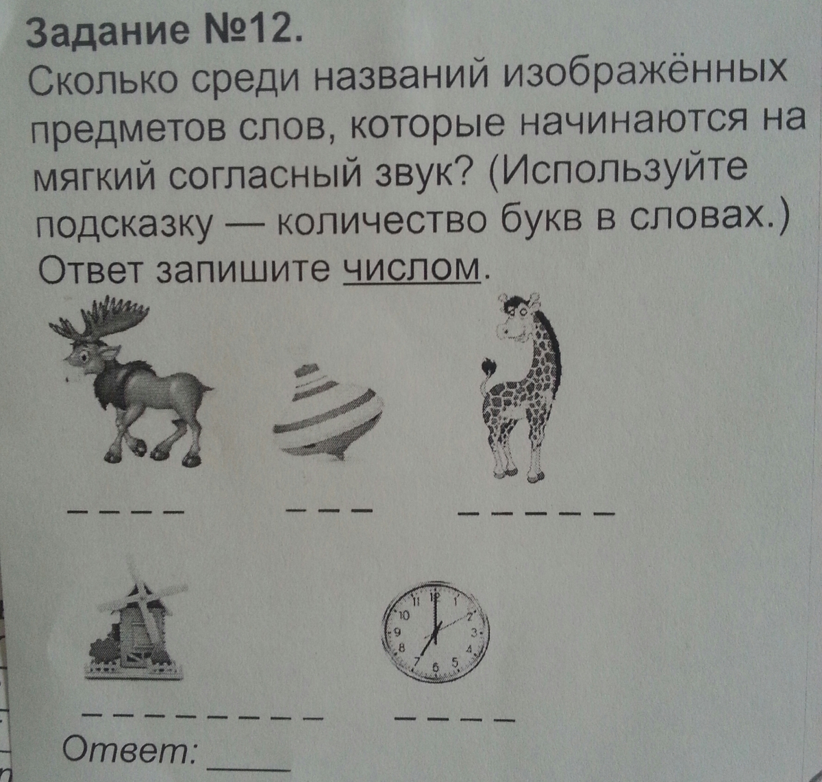 Сколько среди названии изображённых предметов слов, которые начинаются на мягкий согласный звук?