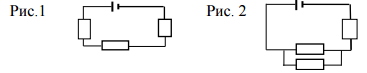 При замыкании источника электрического тока на сопротивление (рис.1) в первом случае сила тока в цепи 5 А. При замыкании на сопротивление во втором случае (рис. 2) сила тока равна 9 А. Найдите ЭДС источника и его внутреннее сопротивление. (сопротивление каждого резистора 2 Ом)