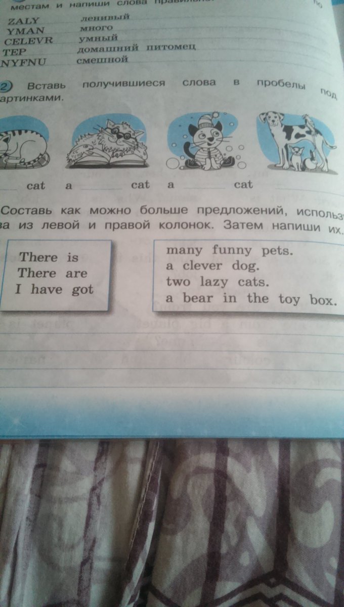 I have got two lazy cats\a clrver dog. There is a bear in the toy box\ many funny pets.