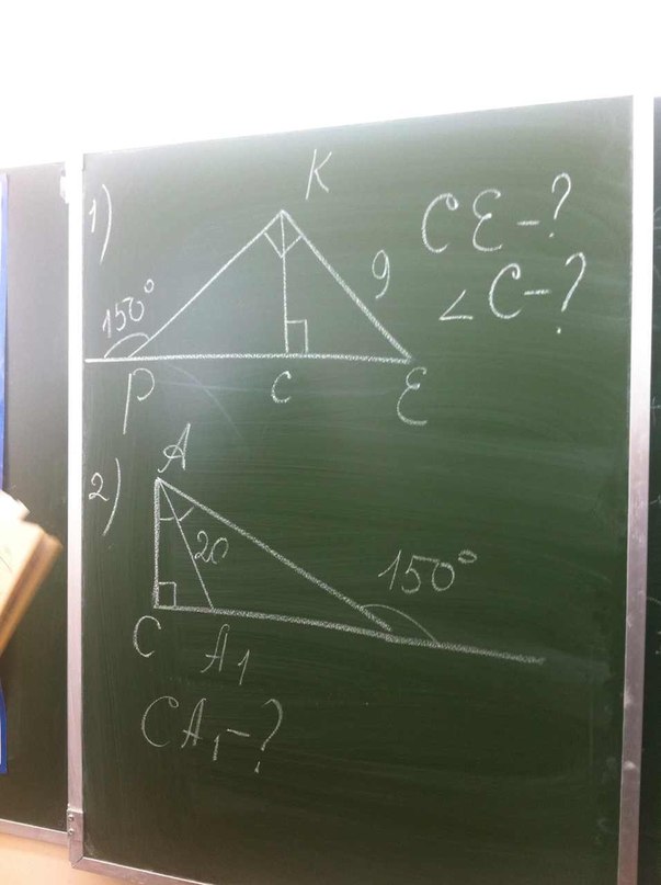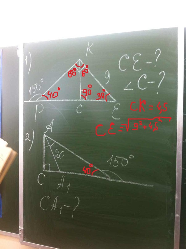 вот в первой задаче там же угол C уже же нарисован что 90 градусов вроде,зачем его искать,а вот СЕ можно найти