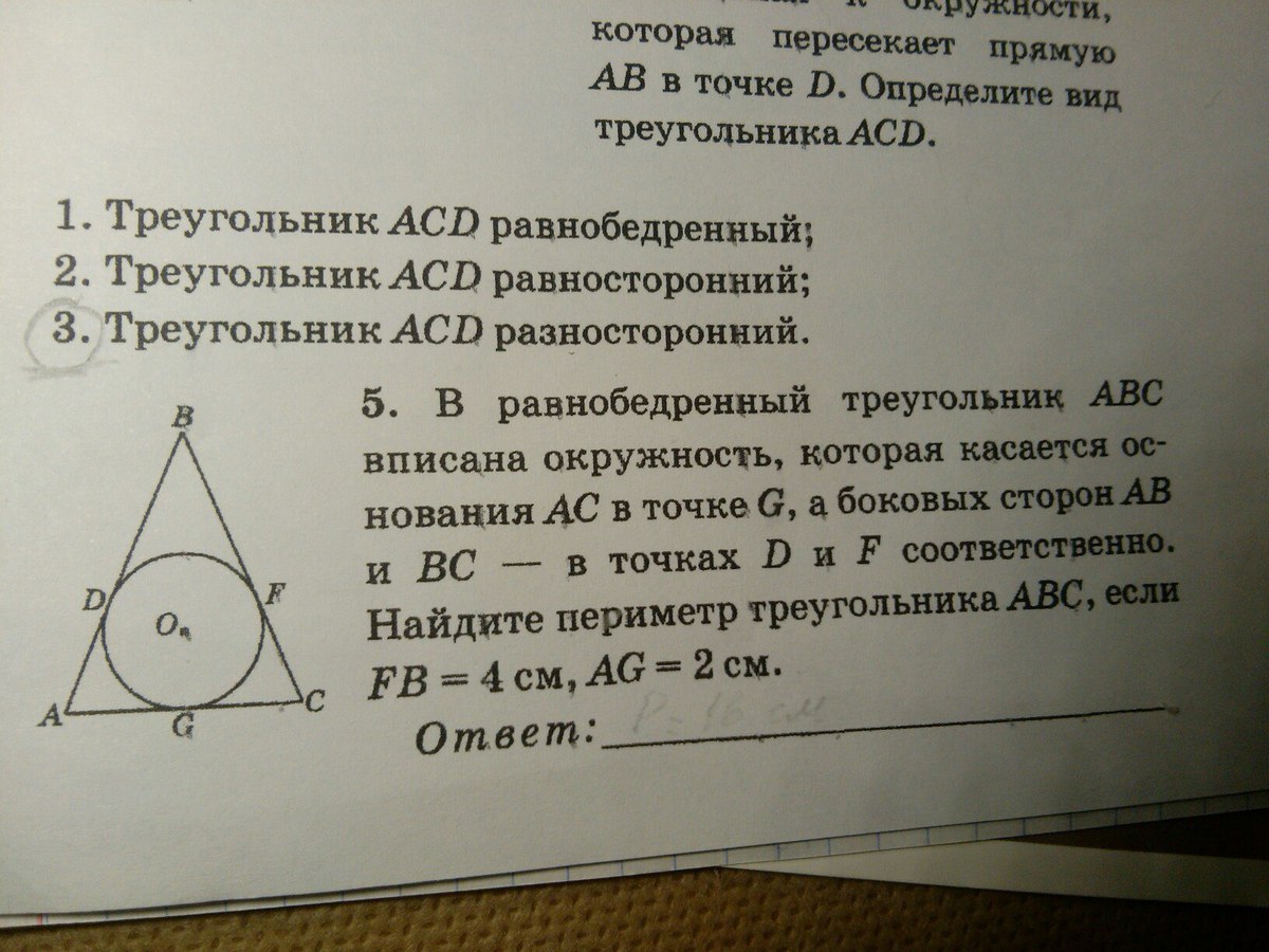 треугольник равнобедренный, поэтому АВ=ВС, и тогда по свойству касательных к окружности, ВД=ВF=4