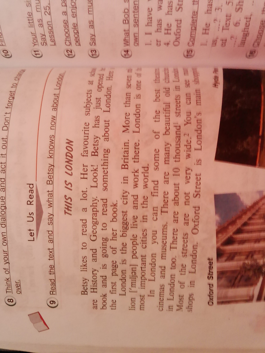 Бетси нравиться много читать . ее любимые объекты в школе это история и география . СМОТРИ! Бэтси открыла книгу и начинает читать что то о Лондоне это первая страница ее книги