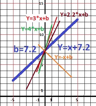 y = x+ 7.2 ∩ 3*x + b.