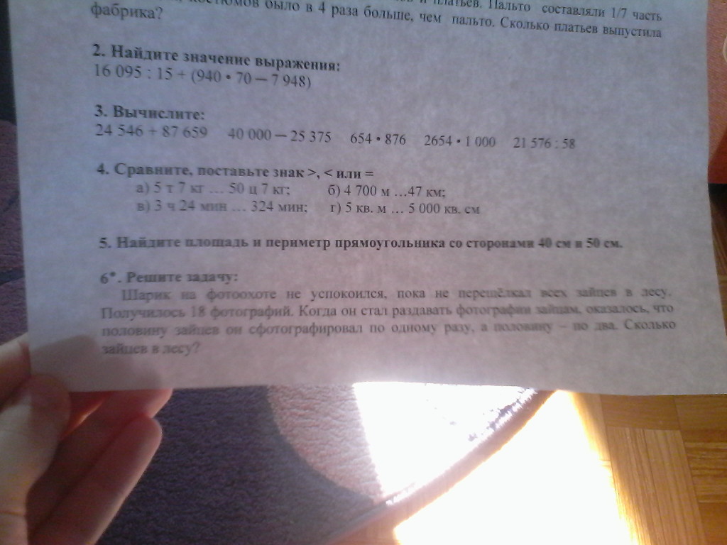 18:3=6 - столько зайцев сфоткал по одному разу,а так как у нас есть условие, что половину зайцев он сфоткал 2 раза, то всего 6+6=12 зайцев всего.