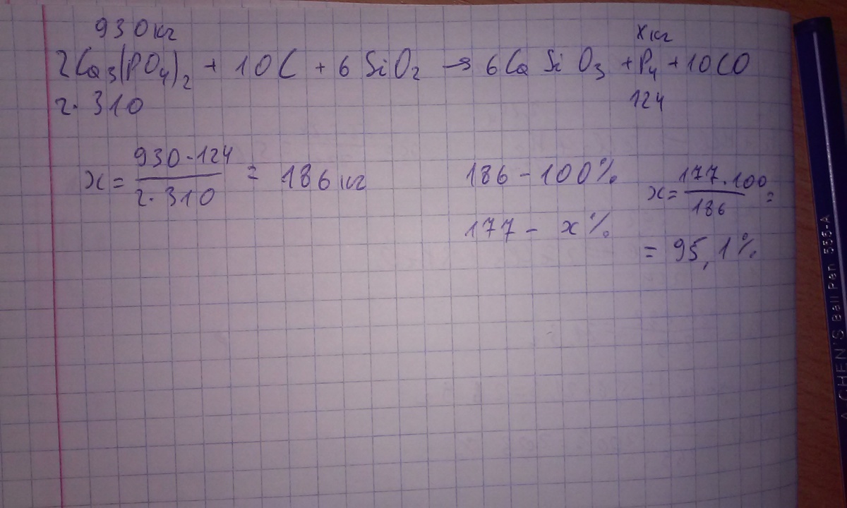 В промышленности из 930кг. фосфата кальция получили 177кг. фосфора.Каков выход продукта от теоретически возможного
