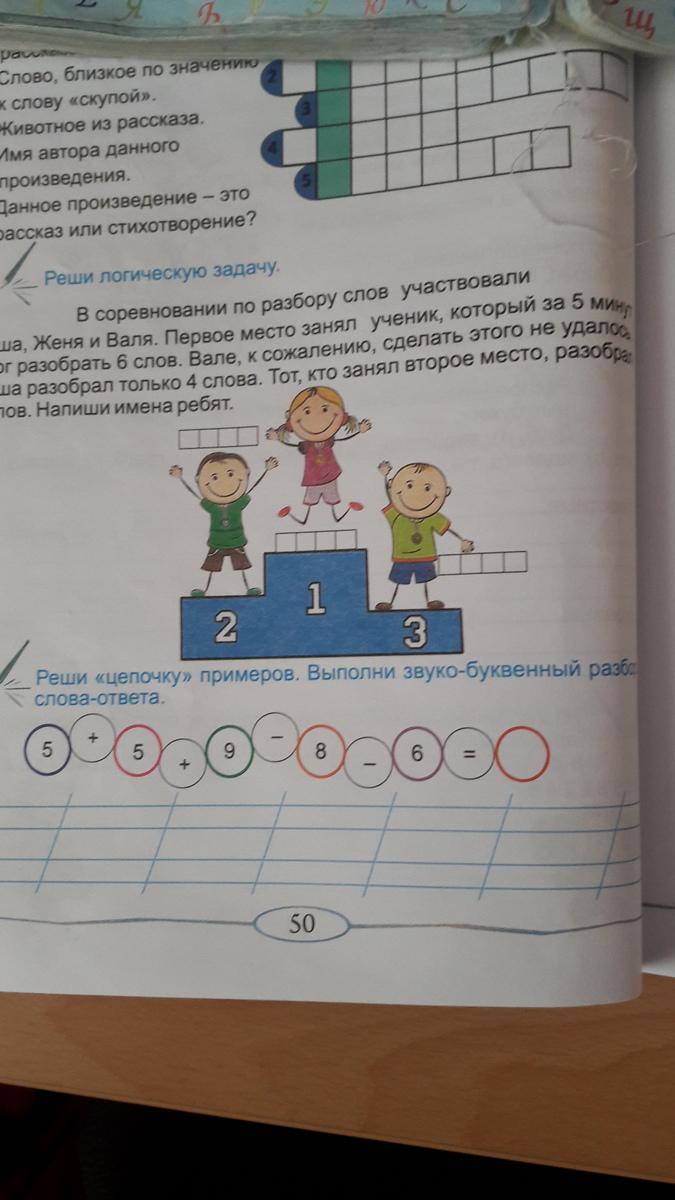 у Вали 2 место(5 слов) ,а у Жени 1 место( 6 слов).