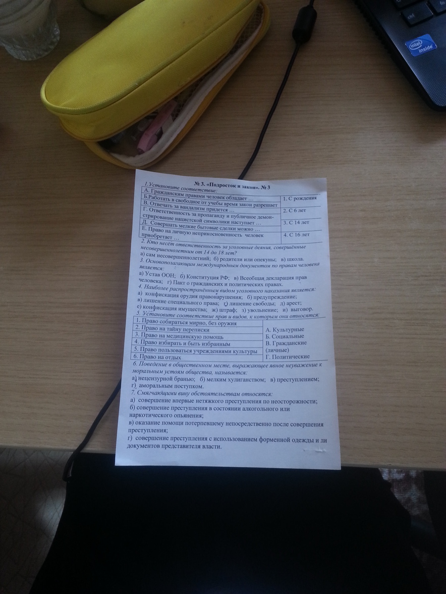 Пожалуйста, помогите сделать тест! Подросток и закон