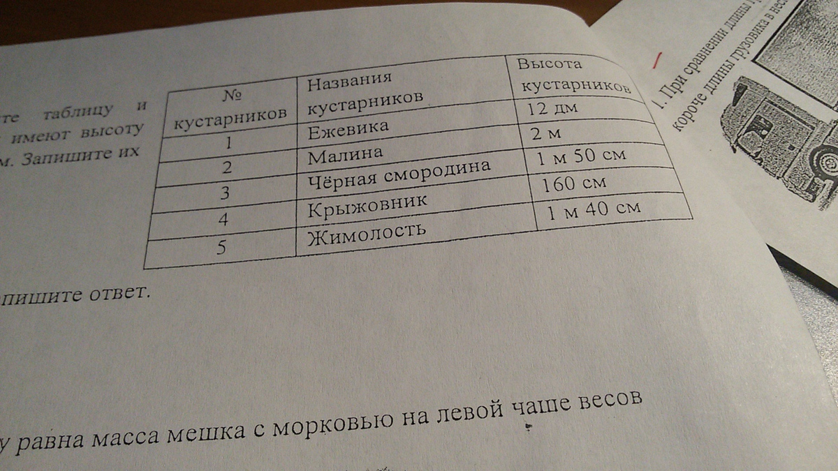 внимательно рассмотрите таблицу и определите какие кустарники имеют высоту больше 1 метра но меньше 1 метра 55 см запиши их номера