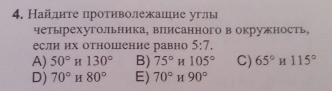 Если четырехугольник вписан в окружность, то сумма его противоположных углов равна 180.