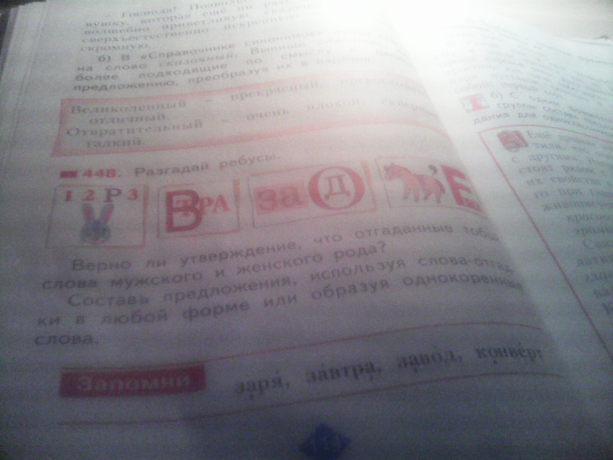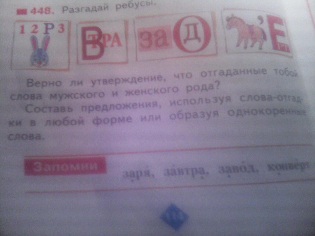 помогите плиз с 448||||||||||||||||||||||||||||||||||||||||| составить предложения с этими словами (заря завтра завод конверт)