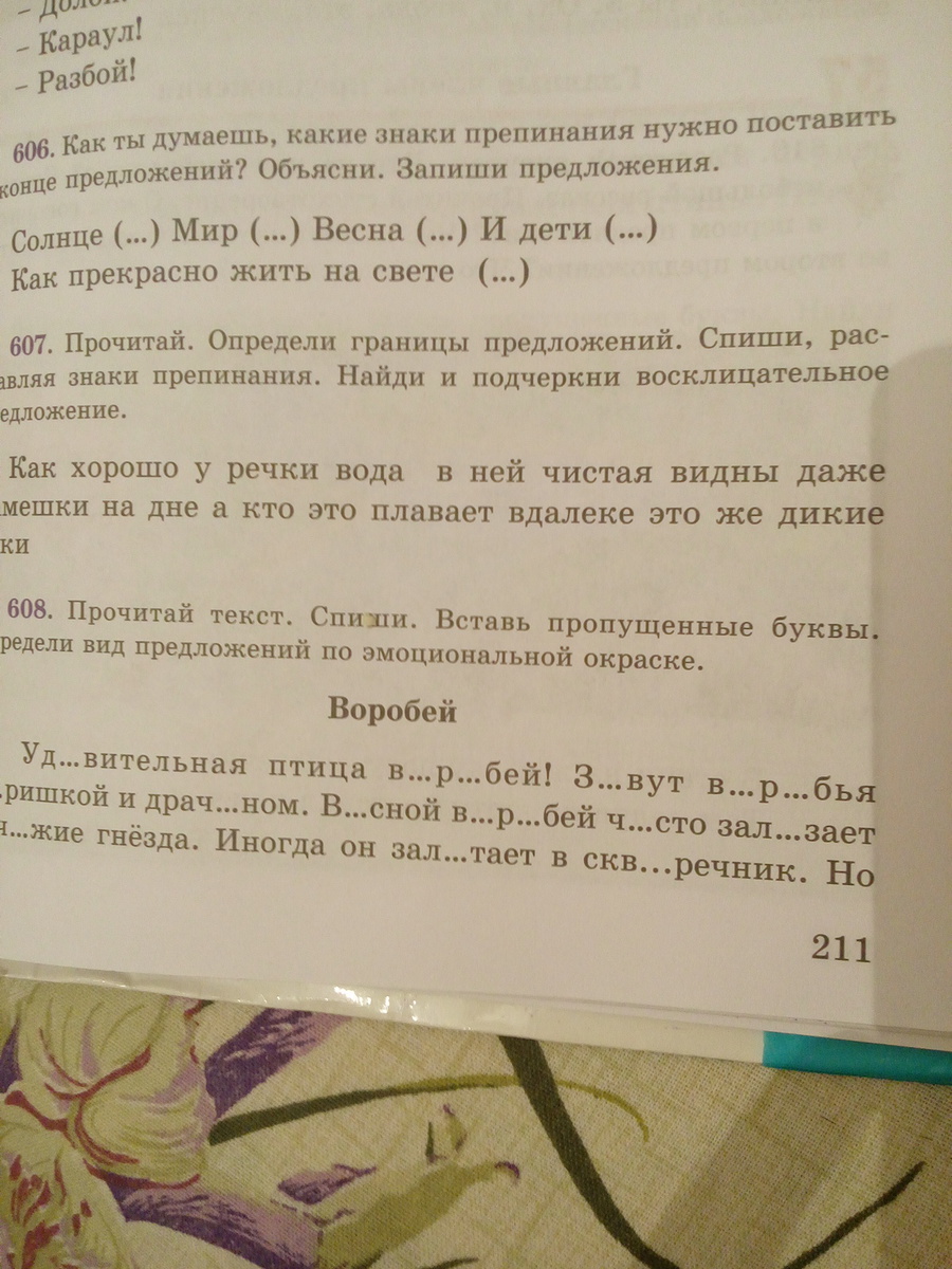 прочитай определи границы предложений спиши расставляя знаки прпинания Найди и подчеркни восклецательное предложение 607 упр