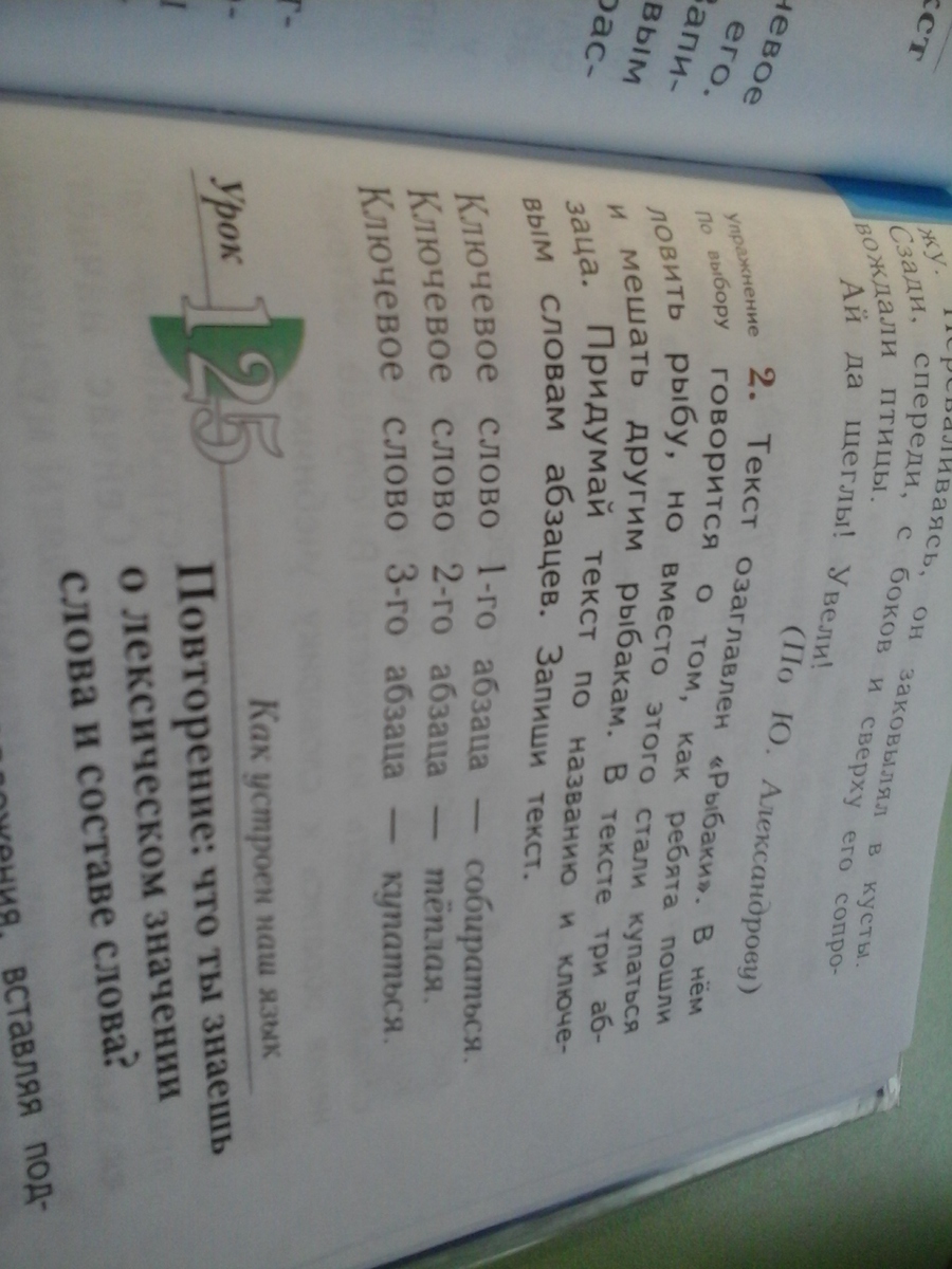 Мальчики не заметили, как наступил вечер. Начинало темнеть и они засобирались обратно. Придя домой ни с чем, они думали, что родители их отругают, тем более, что мальчики весь день купались в пруду. Но мама всё поняла, и просто сказала: "Эх вы, рыбаки!"