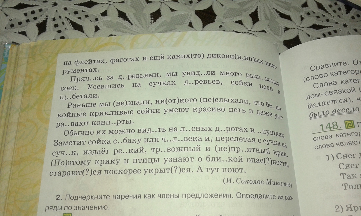 Прячась за деревьями, мы увидели много рыжеватых соек. Усевшись на сучках деревьев, сойки пели и щебетали.