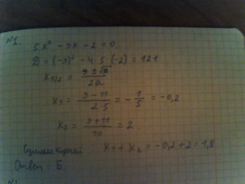 1) Найдите сумму корней уравнения 5x2- 9x - 2 = 0