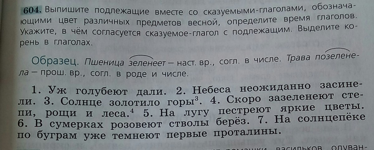 5. Цветы пестреют -наст.вр,согл. в числе.