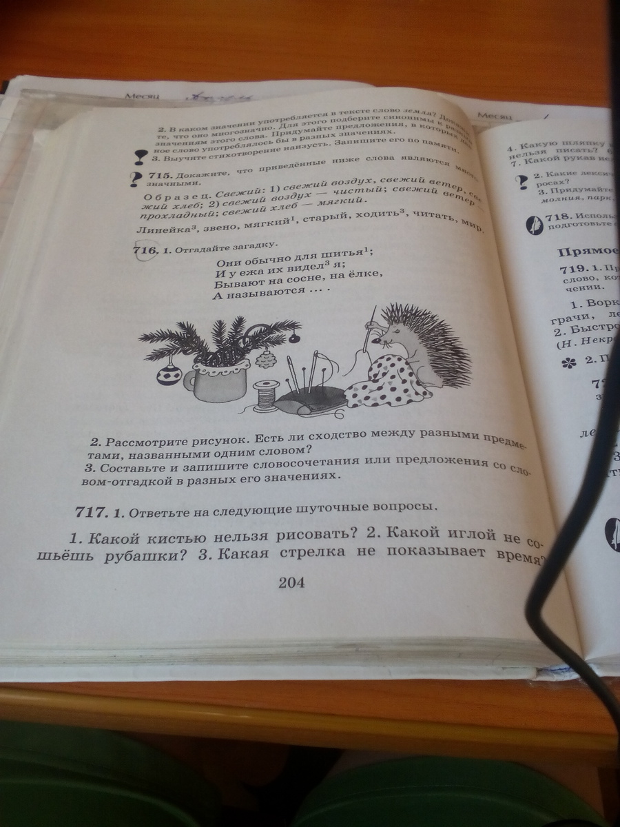 1 иголки,2 есть сходства у ели иголки,у ежа иголки в руке у него иголки.3 у ежа на спине иголки,мама учит меня обращаться с иголкой.У ели иголки колючие .