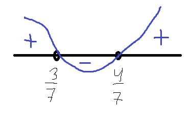 x∈(-∞;3/7)U(4/7;+∞)