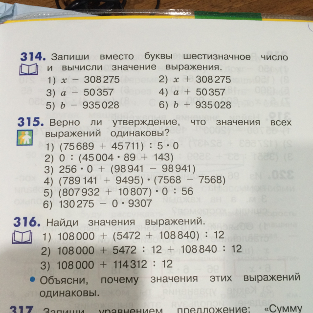 Номер 314.Запиши вместо буквы шестизначное число и вычисли значения всех выражений(Смотреть на фотографию) Заранее спасибо