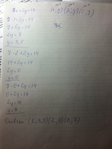 (1;у) 7*1+2y=14 (2;у) 7*2+2у=14 (0;у) 7*0+2у=14