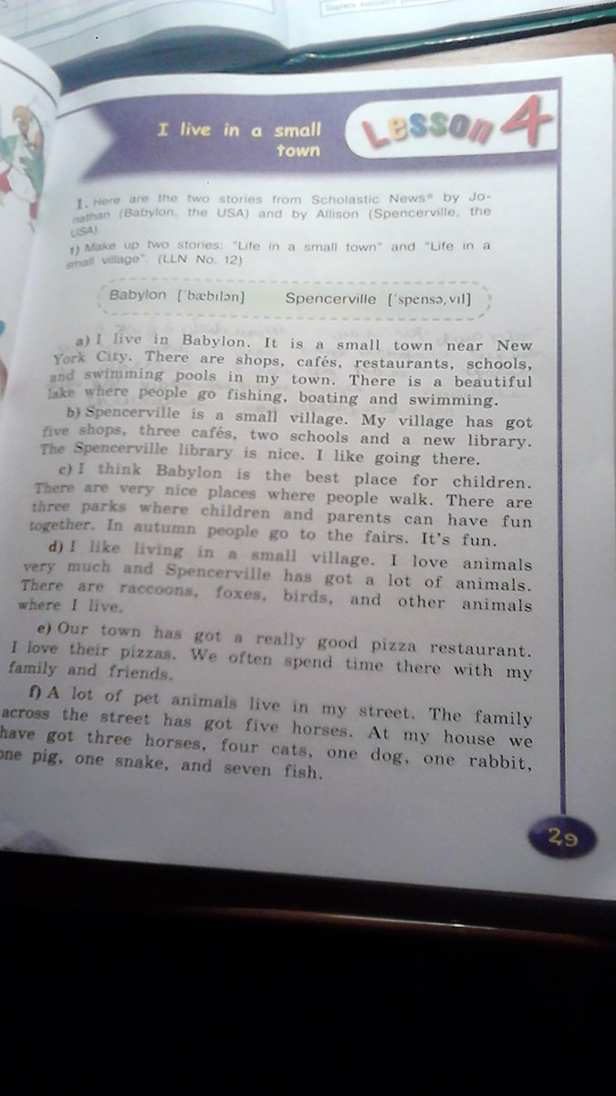 1) Я живу в бейбилоне этот маленький год город нью йорк там есть магазины,кафе,рестораны,школы,басейны люди ходят ловить рыбу