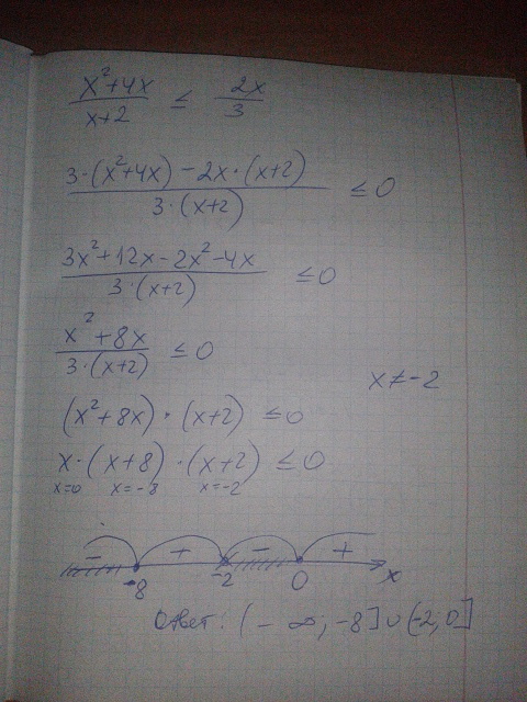 1) (х^2+4x) / (x+2) ≤ (2х) /3