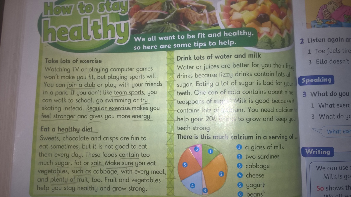 Смотреть телевизор или играть в компьютер вредно,но заниматься спортом полезно.Ты можешь вступить в клуб или играть с друзьями в парке.Если ты не любишь командные виды спорта, в школе ты можешь ходить на плавание или вместо этого кататься на роликах.Часто делай упражнения и ты будешь сильным и энергичным.