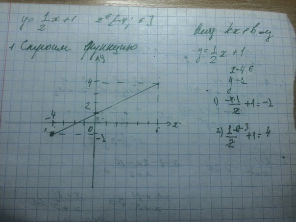 это линейная функция, графиком будет являться прямая, которая строится по двум точкам. берем точки из интервала -4≤x≤6, на котором нам надо построить функцию и находим значение в них