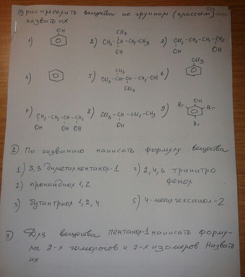 2) 1/CH2(OH)-CH2-C(OH)(OH)-CH2-CH3. 2/ CH3-CH2-CH(OH)-CH2(OH). 3/Я НЕ СМОГУ НАПИСАТЬ.4.тоже самое, как в 1 задании 9 формуле, только все Br меняй на NO2. 5/ CH2-CH2-CH2-CH(CH3)-CH2-CH(OH)-CH3.