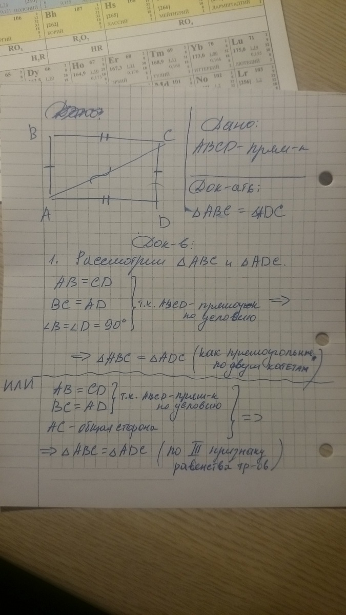 В прямоугольнике ABCD проведена диагональ АС . Докажите , что треугольник ABC=треугольнику АDC .