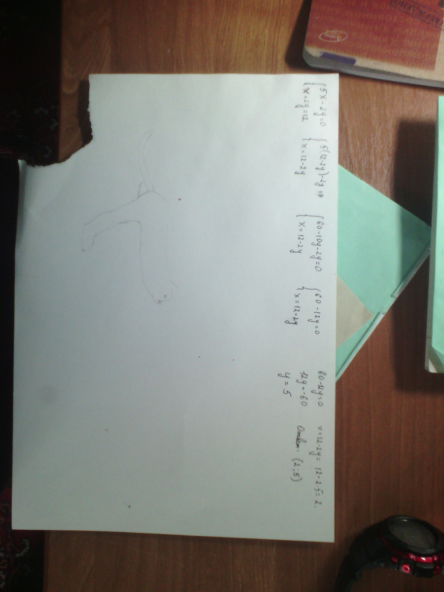 не выполняя построений, найдите координаты точки пересечения графиков уравнения 5x-2y=0 и x+2y=12
