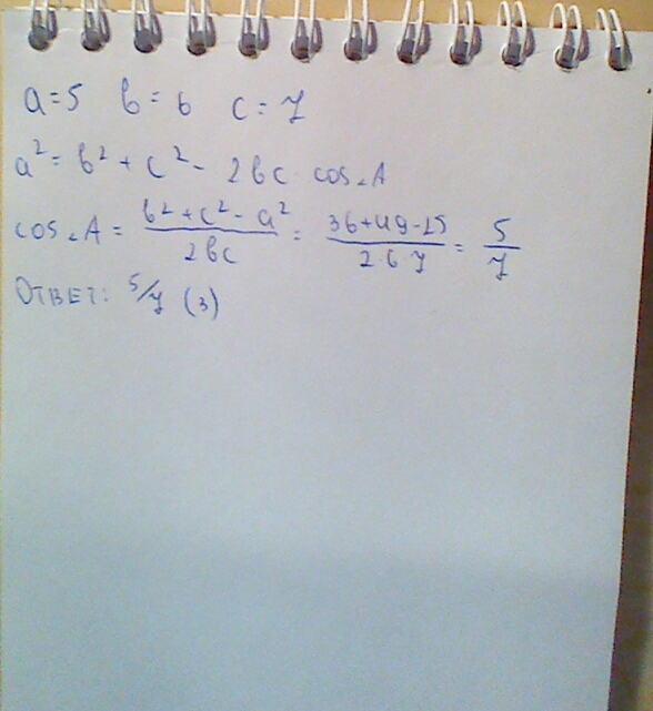 сосинус угол А = б 2 +ц2 = 5 седьмых