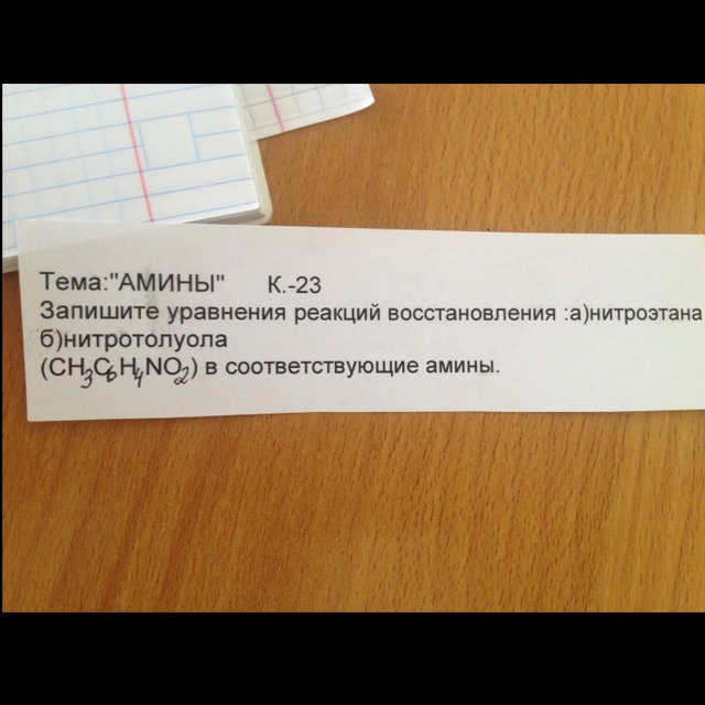 C6H4CH3NO2 + 3H2 --> C6H4CH3NH2 + 2H2O