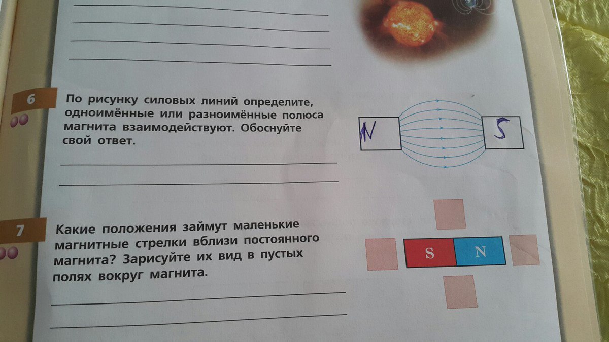 6) Линии поля выходят из N и входят в S (в южный) (на рисунке правильно)