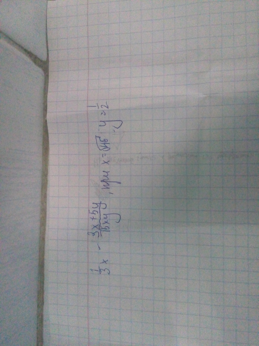 (5y-3x-5y) /15xy = -3x /15xy = -1/5y = -1/(5*1/2) = -1/5*0.5 = -1/2.5 = -0.4