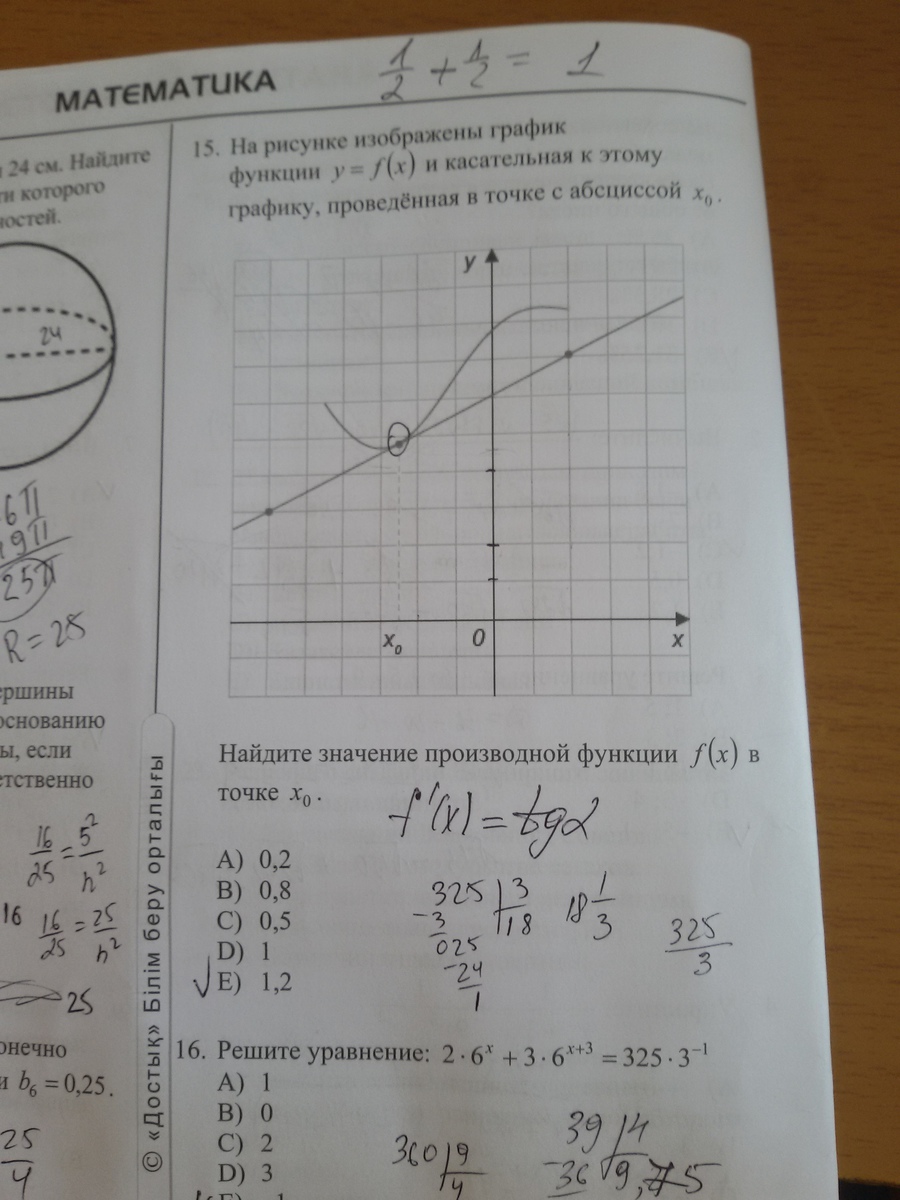 Значение производной f(x) в точке х₀ - это коэффициент к.