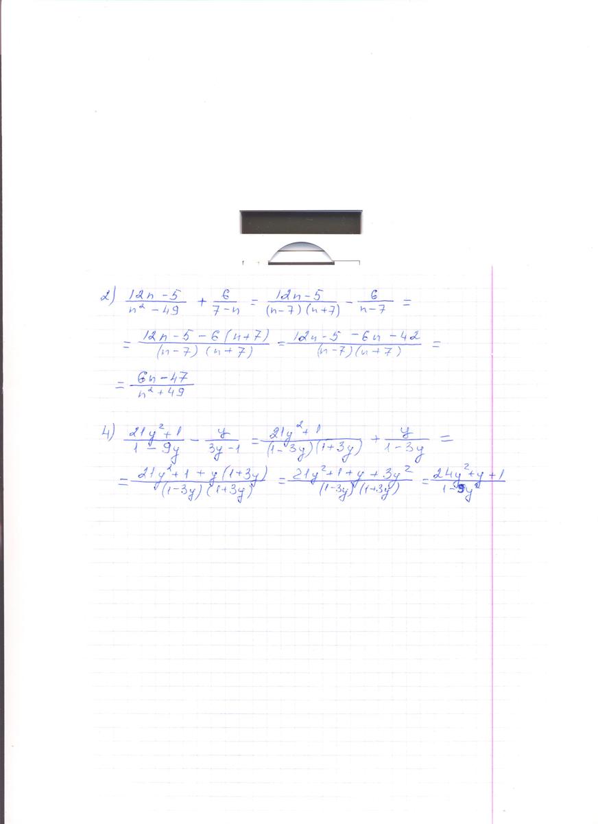 Помогите решить 2 примера ; Задание Найдите сумму или разность алгебраических дробей. ( нужно расписать решение ) во вложених