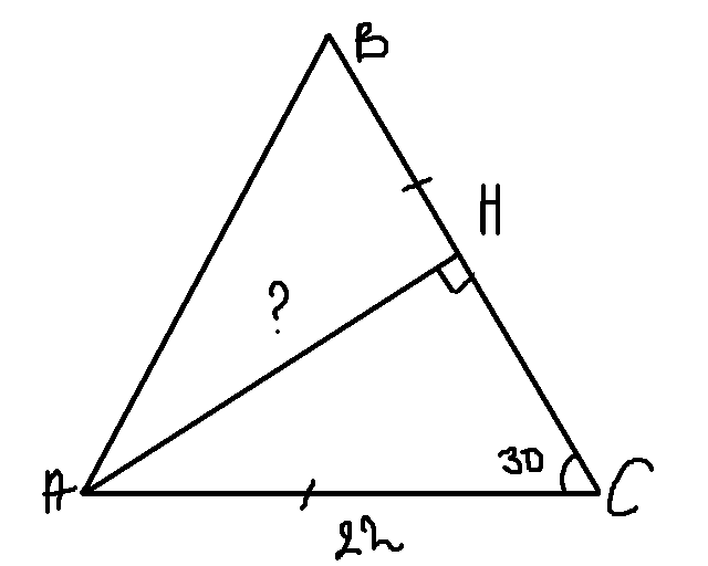 рассм. тр-к AHC - углы равны 30, 60 и 90 ⇒ AH=1/2AC=22/2=11