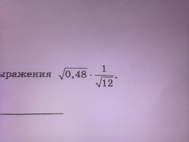 Ответ:0,2. Так как корень из 0,48/корень из 12=0,04.Корень из 0,04=0,2.