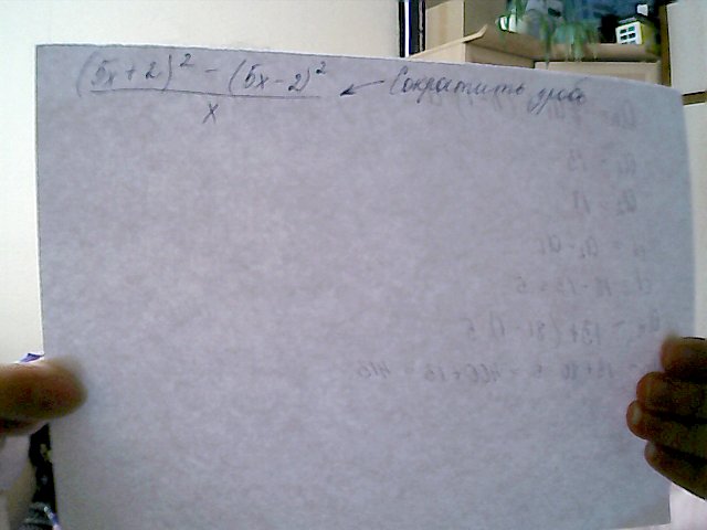 frac{(5x+2)^2-(5x-2)^2}{x}=frac{25x^2+20x+4-(25x^2-20x+4)}{x}=frac{40x}{x}=40