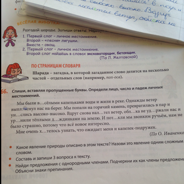 Плиииз.Помогите пожалуйста номер 66.Дам 100 баллов.Надо сделать только ,где написано составь и запиши 3 вопроса к тексту.Осталось 2 минуты.Урок Русский 4класс